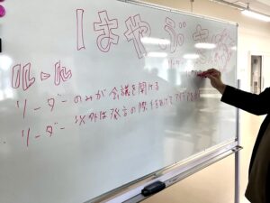 リーダーは全体の進め方を考え、メンバーは「こうしたらどうかな?」「こっちの方法はどう?」と意見を出し合いながら役割分担を決めていきます。